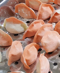Make a good dough and mix the filling into the machines filling hopper and dough hopper, through the scale handle can adjust the thickness of the skin, the microcomputer numerical control system to adjust the amount of filling, will be transferred to the head of the molding machine can be out of the dumplings.
